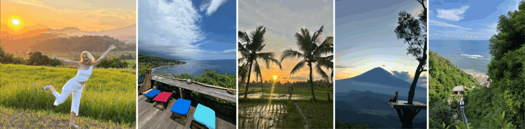 În Bali simți viața diferit — totul are ritmul său blând, parfumul său de flori și sunetul oceanului care te cheamă spre tine. Aici, ne reconectăm cu natura prin ritualuri sacre, mâncare vie, masaj balinez, dans, râs și meditație.